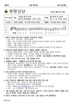 2026년 01월18일 (연중 제 2 주일, 일치주간) 원평주보