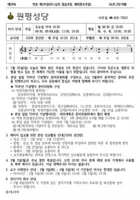 2026년 01월25일 (연중 제 3 주일, 하느님의 말씀 주일, 해외원조 주일) 원평주보