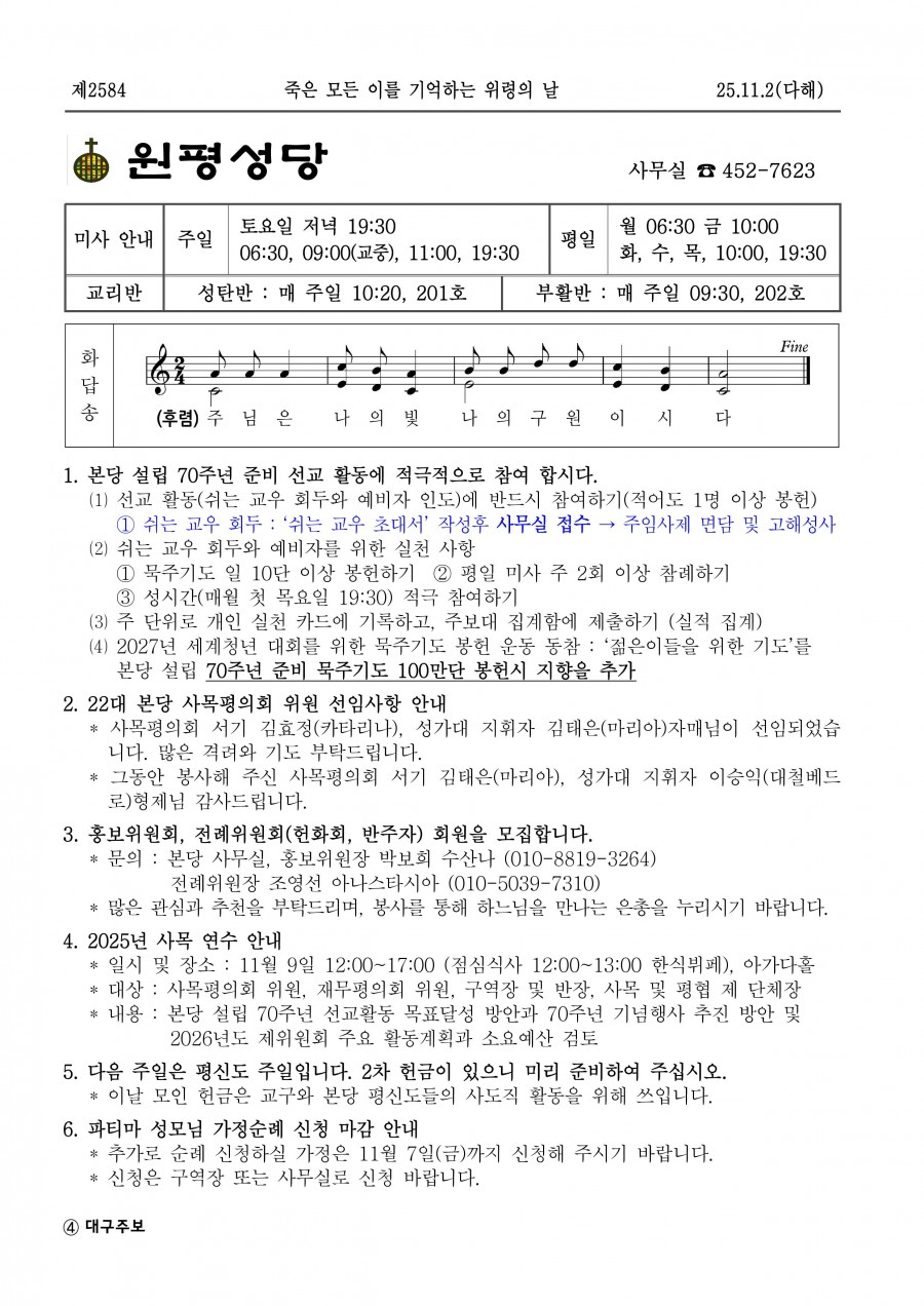 2025년 11월02일 (죽은 모든 이를 기억하는 위령의 날) 원평주보
