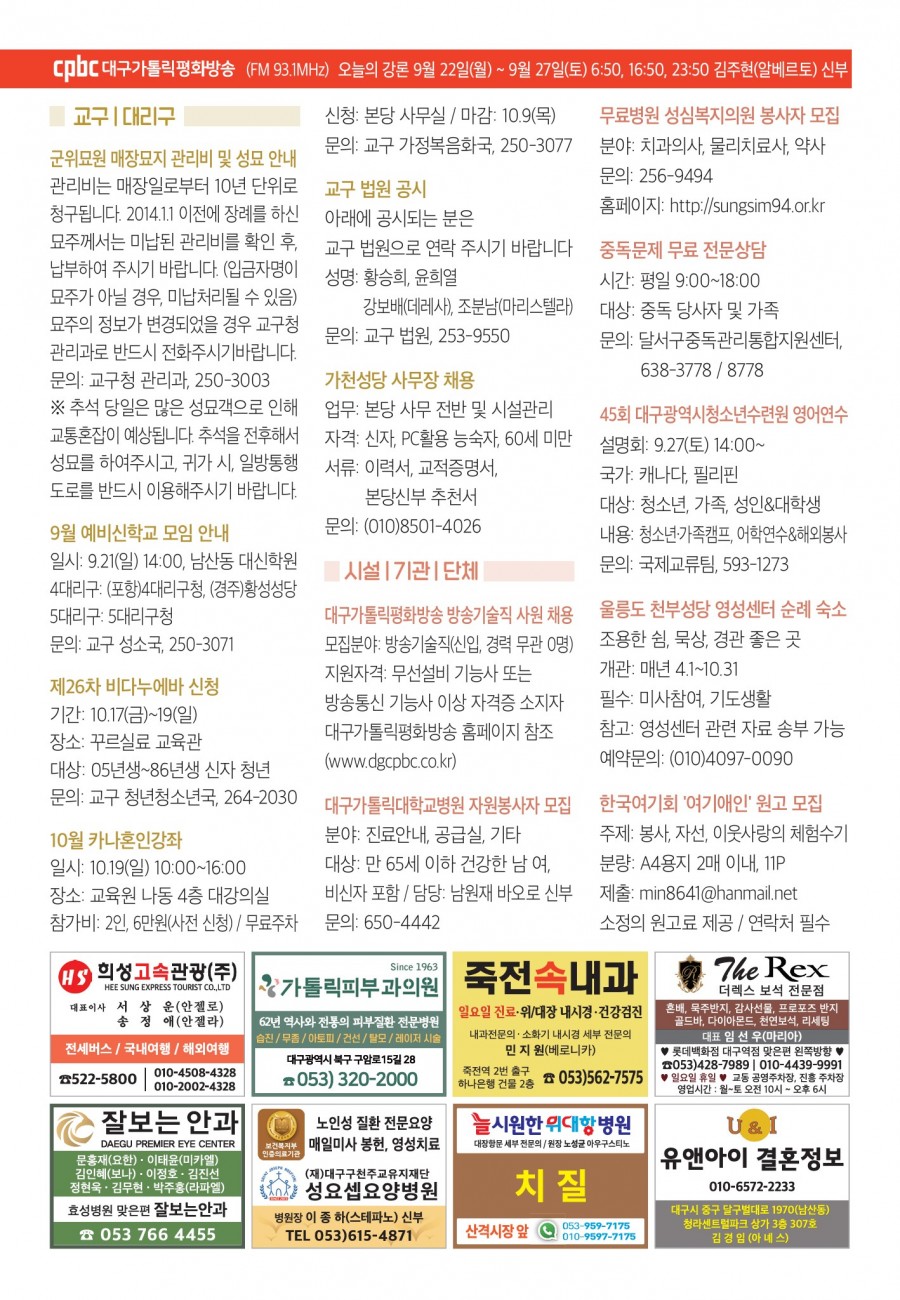 2025년 09월21일 (순교자 대축일) 대구주보 > 본당주보