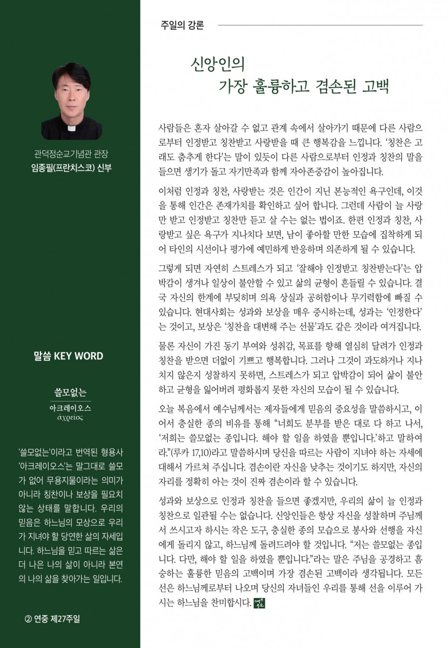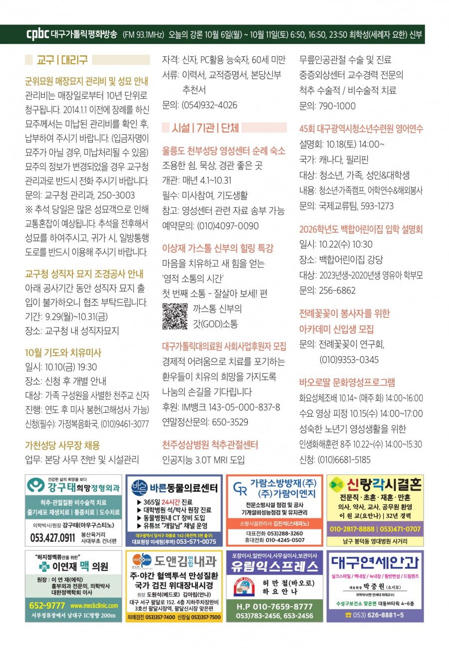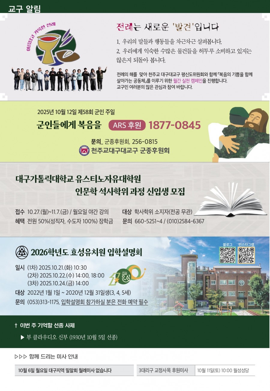 2025년 10월05일 (연중 제 27 주일) 대구주보 > 본당주보