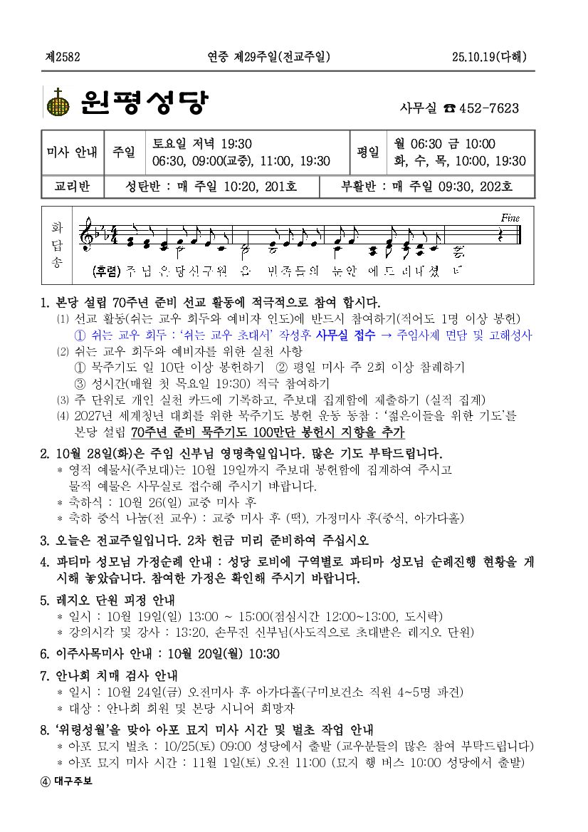 2025년 10월19일 (연중 제 29 주일, 전교주일, 민족들의 복음화를 위한 미사) 원평주보