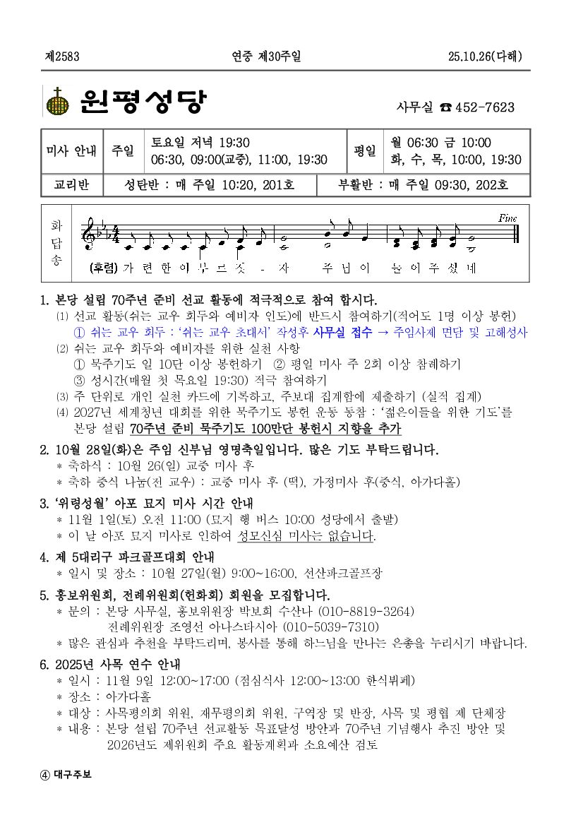 2025년 10월26일 (연중 제 30 주일) 원평주보 > 본당주보
