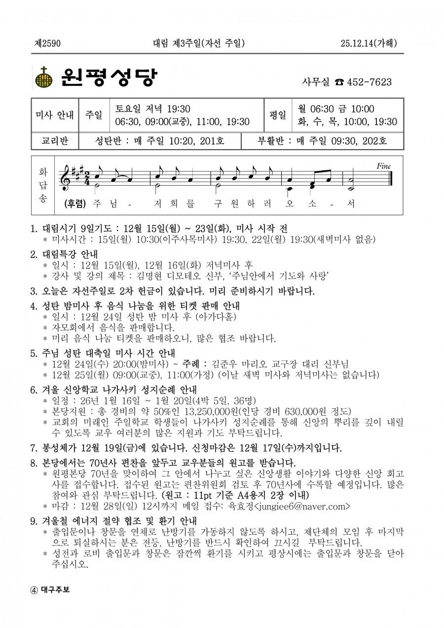 2025년 12월14일 (대림 제 3 주일, 자선주일) 원평주보 > 본당주보