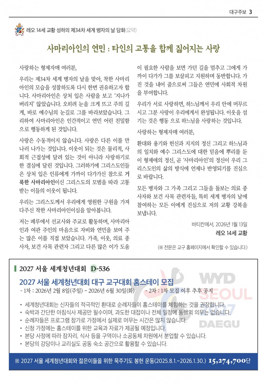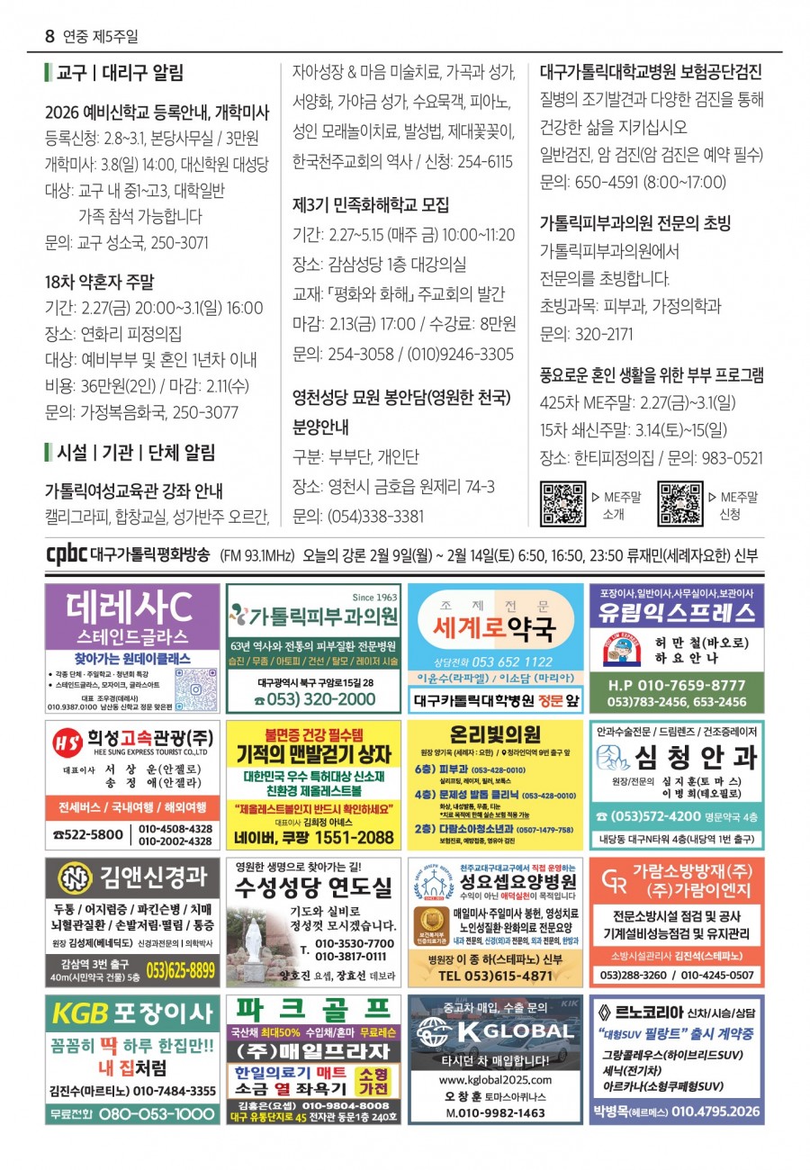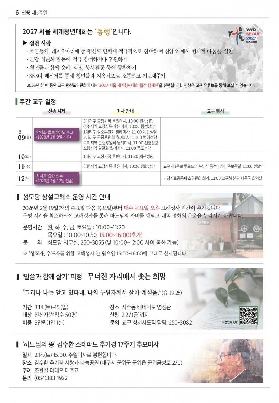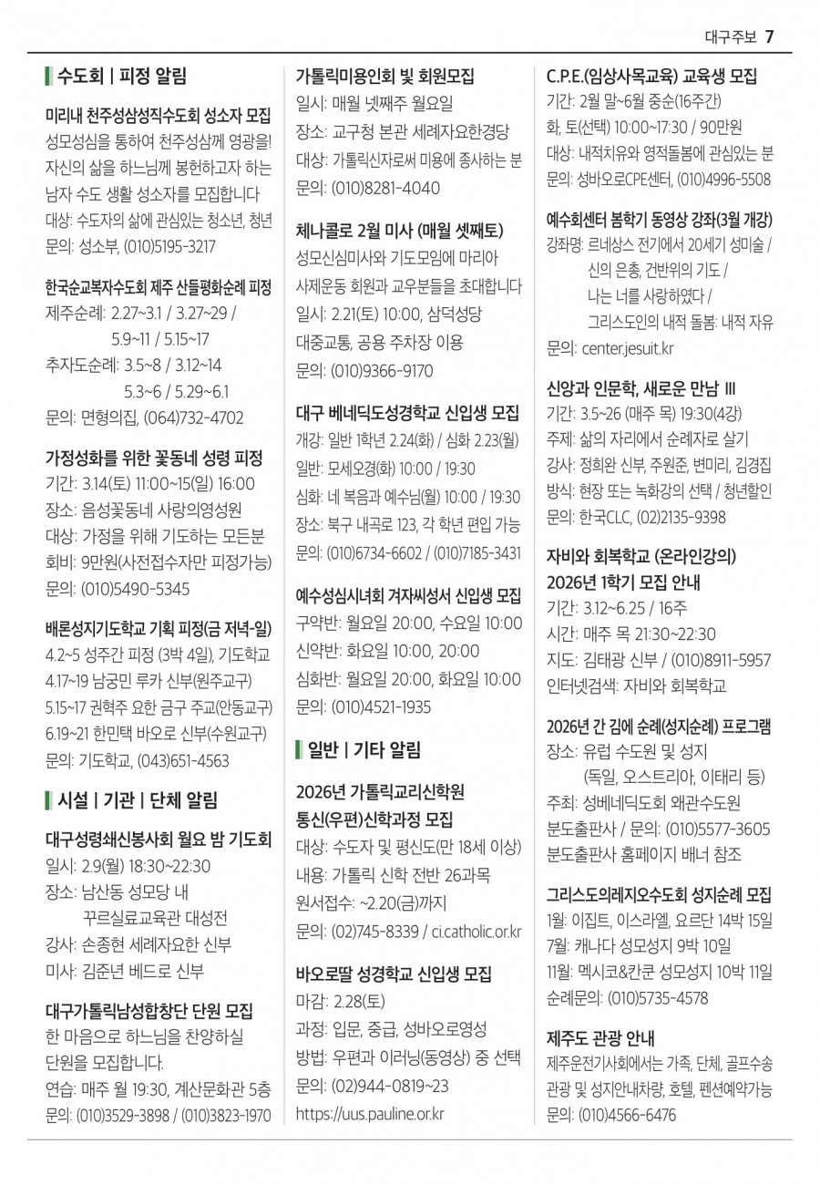 2026년 02월08일 (연중 제 5 주일) 대구주보 > 본당주보