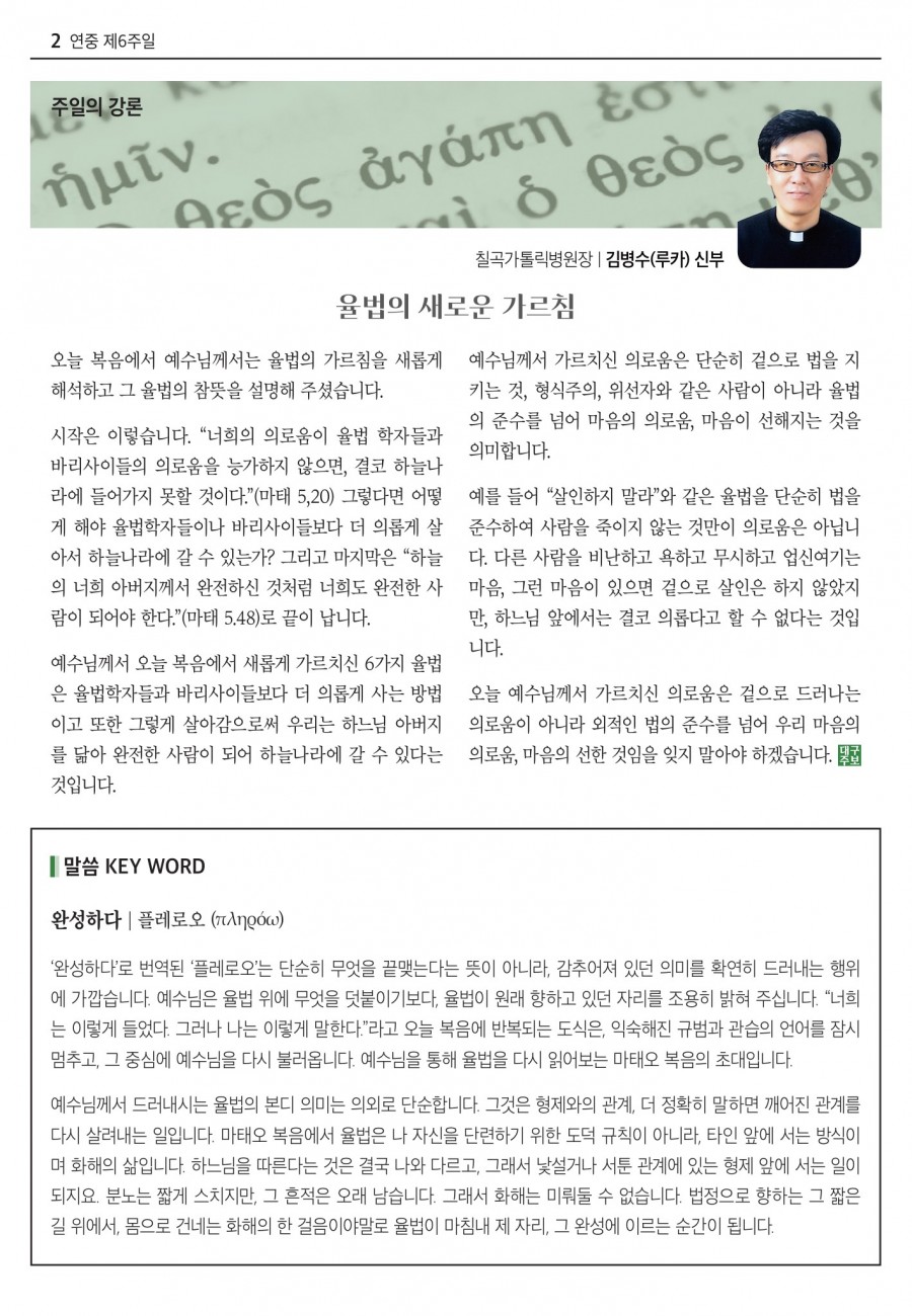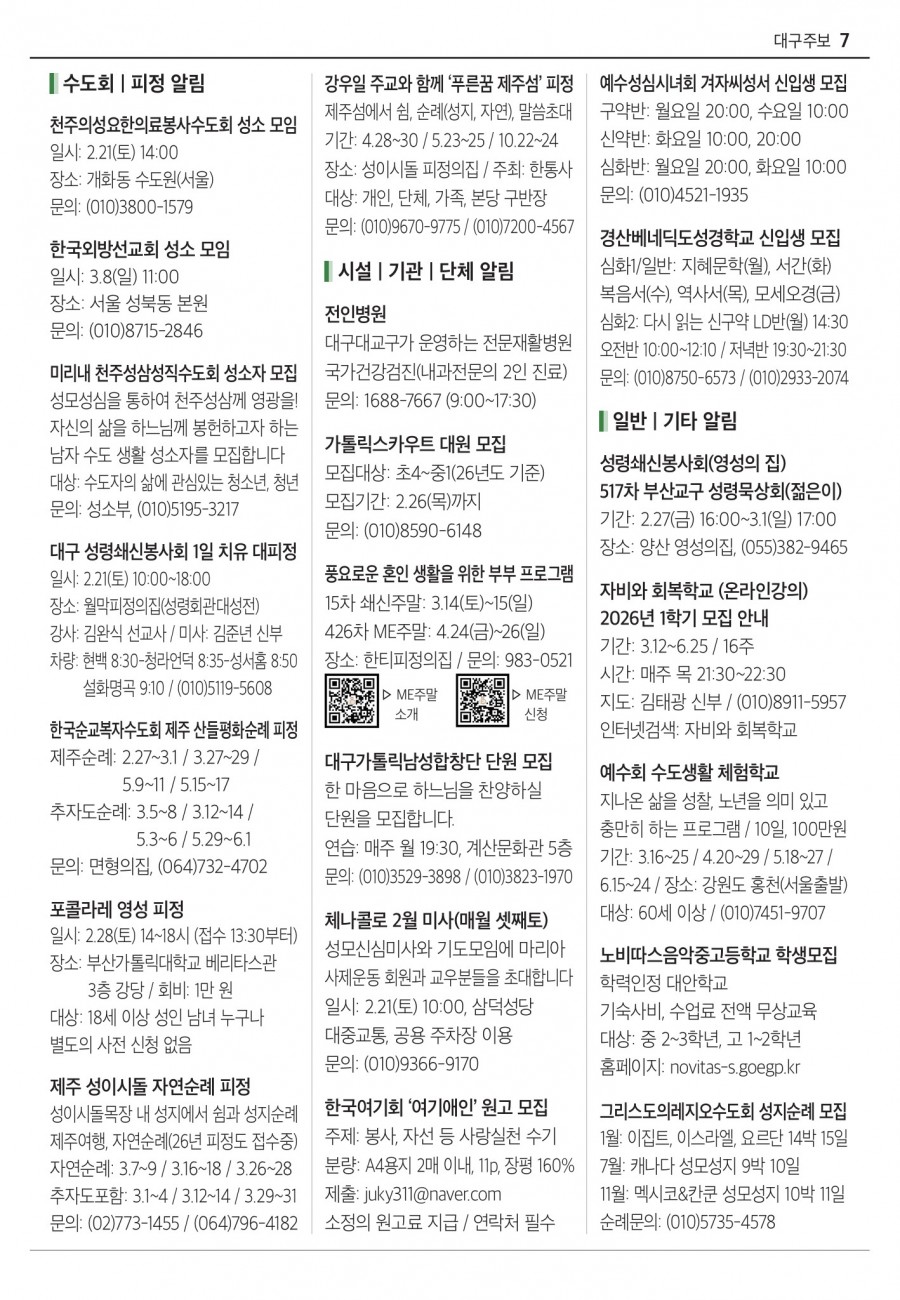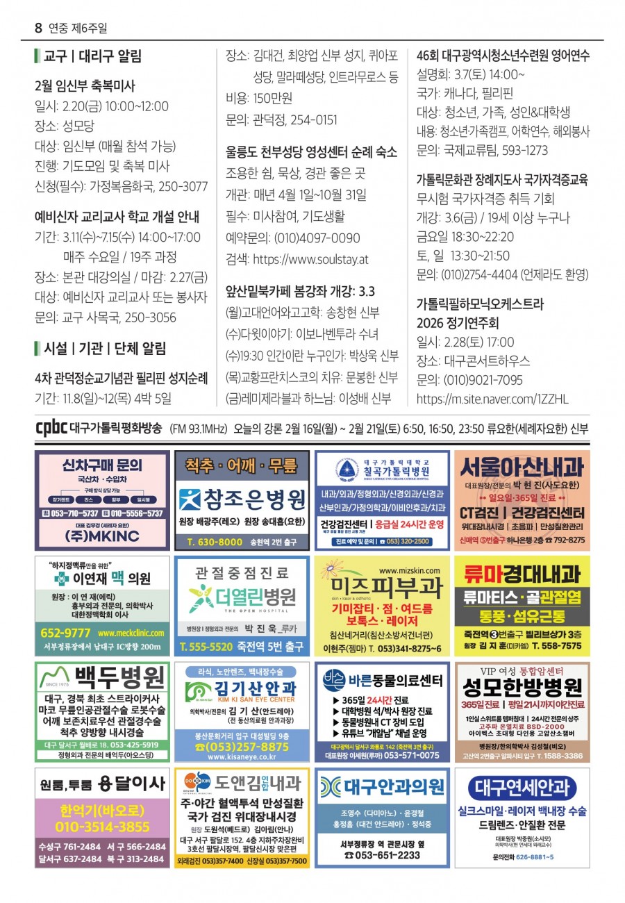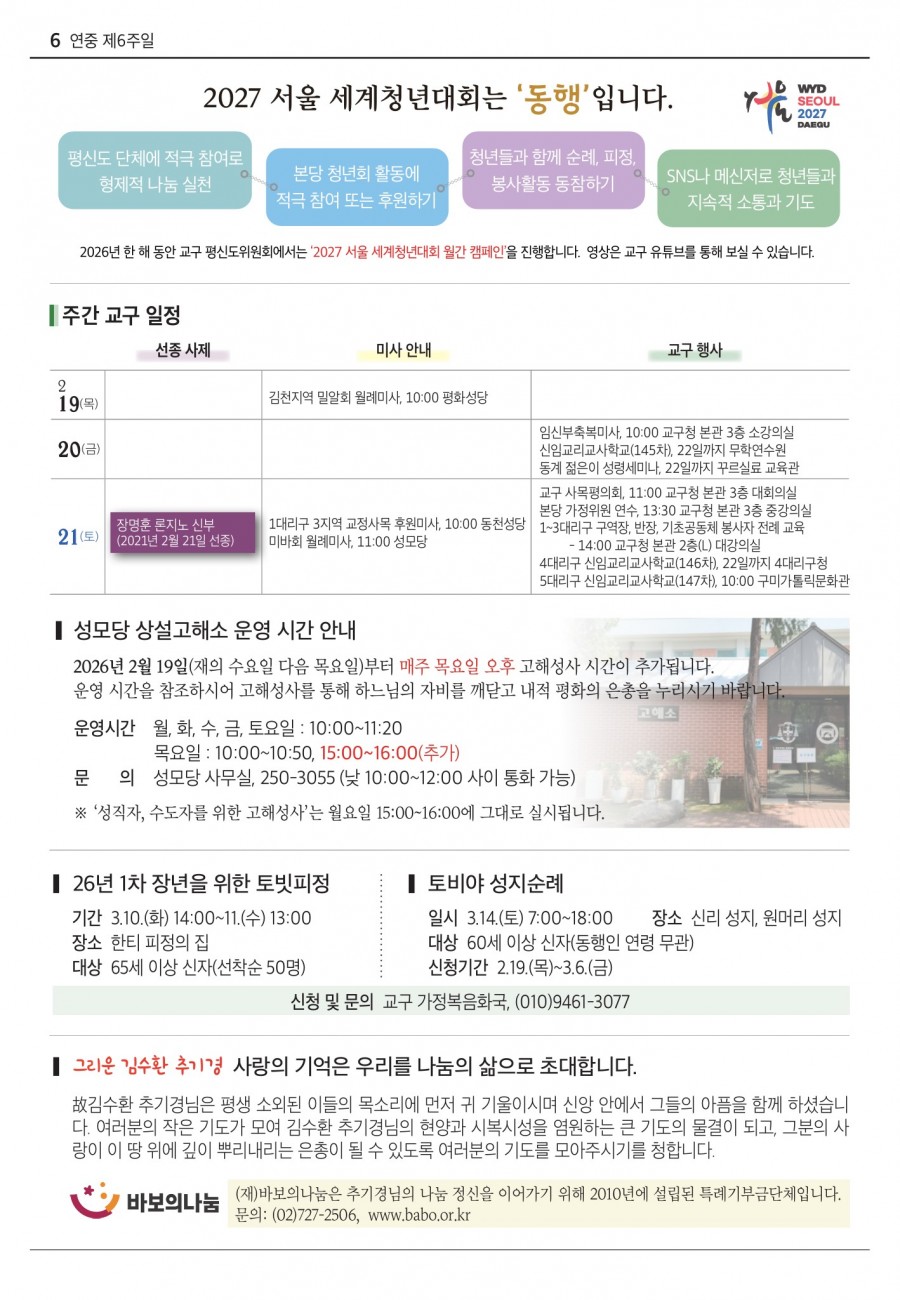 2026년 02월15일 (연중 제 6 주일) 대구주보 > 본당주보