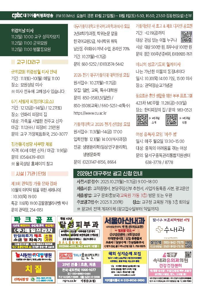 2025년 10월26일 (연중 제 30 주일) 대구주보 > 본당주보