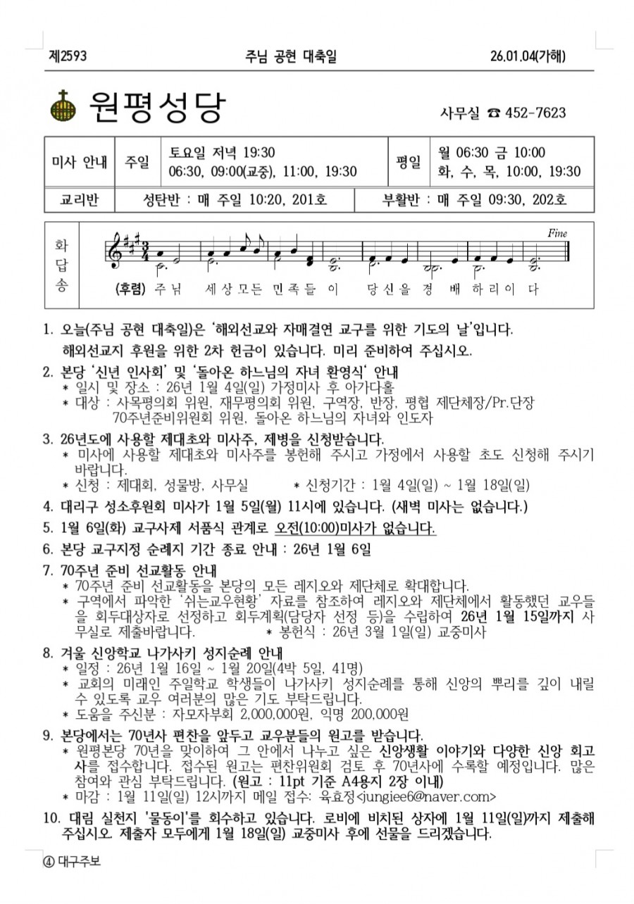 2026년 01월04일 (주님 공현 대축일) 원평주보
