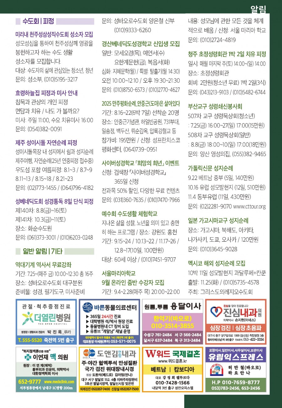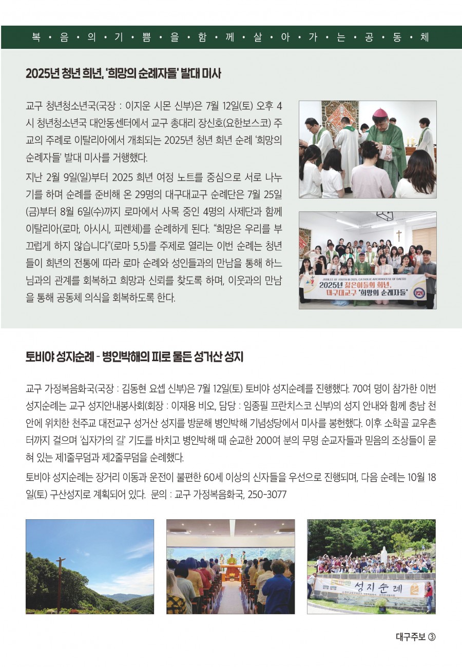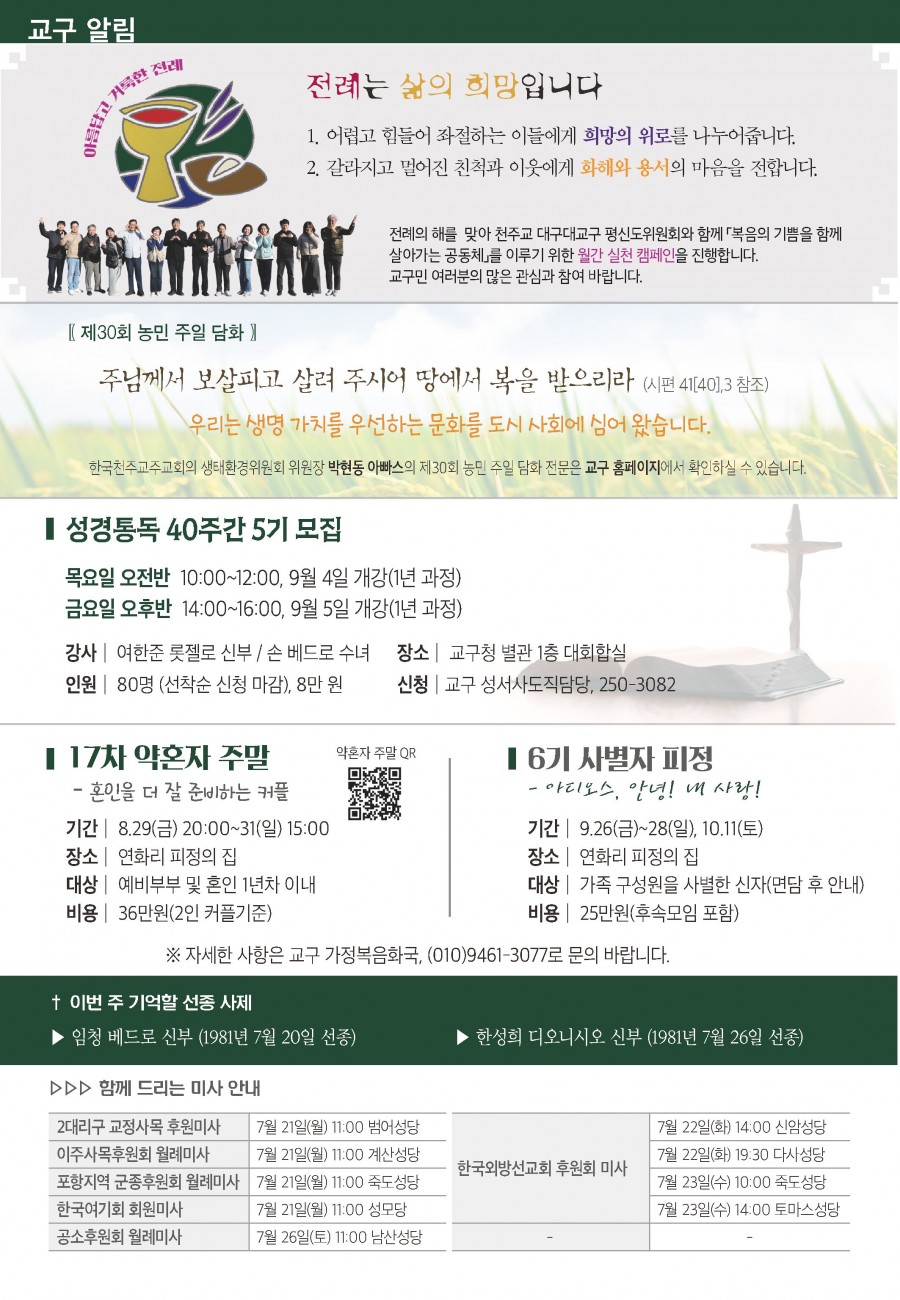 2025년 07월20일 (연중 제 16 주일, 농민주일) 대구주보 > 본당주보