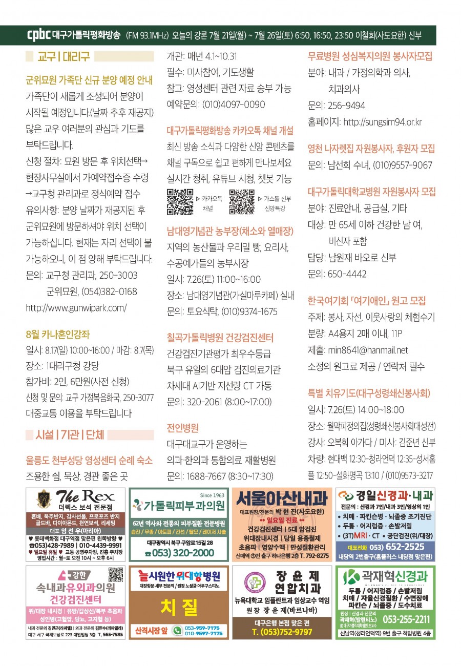 2025년 07월20일 (연중 제 16 주일, 농민주일) 대구주보