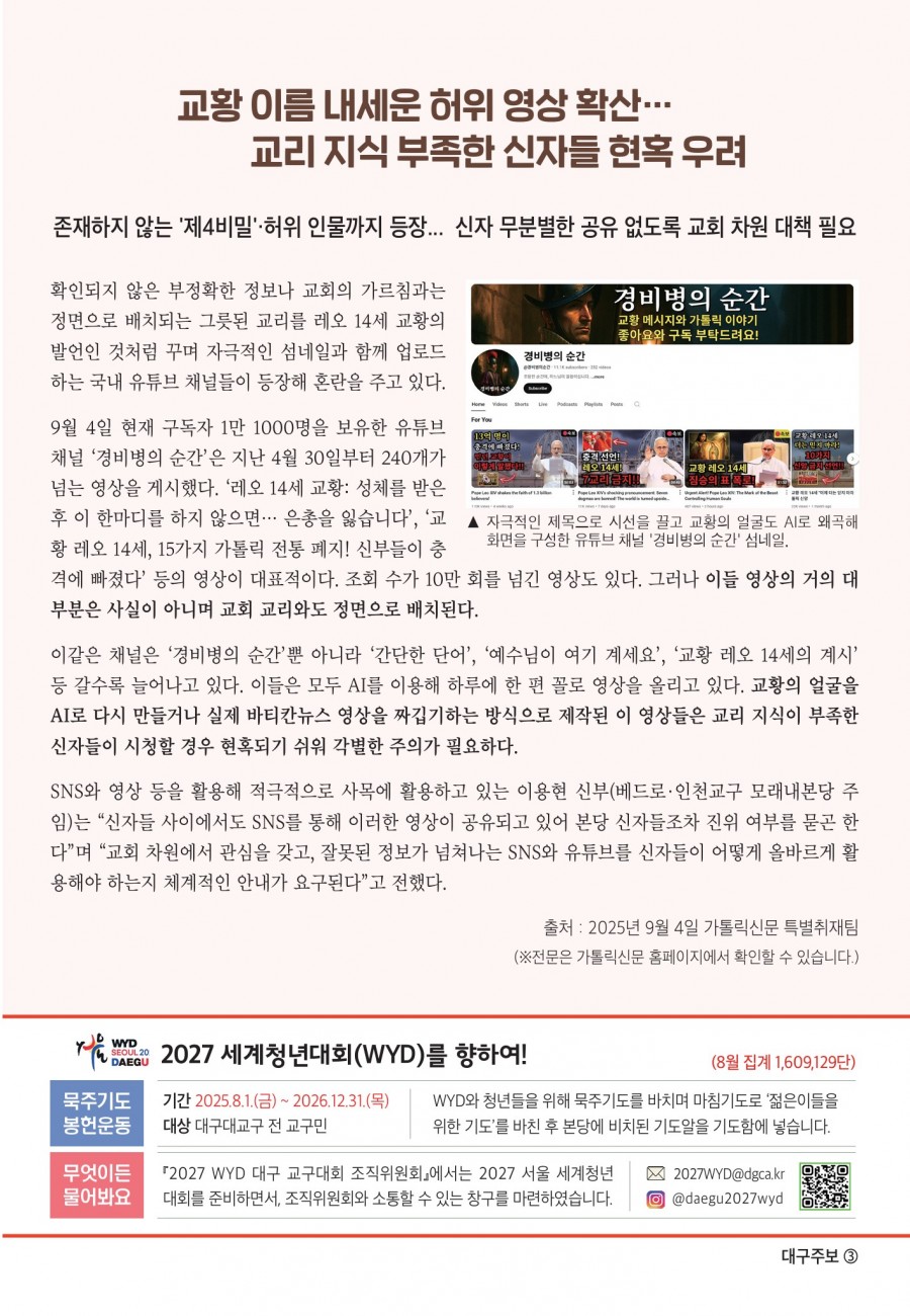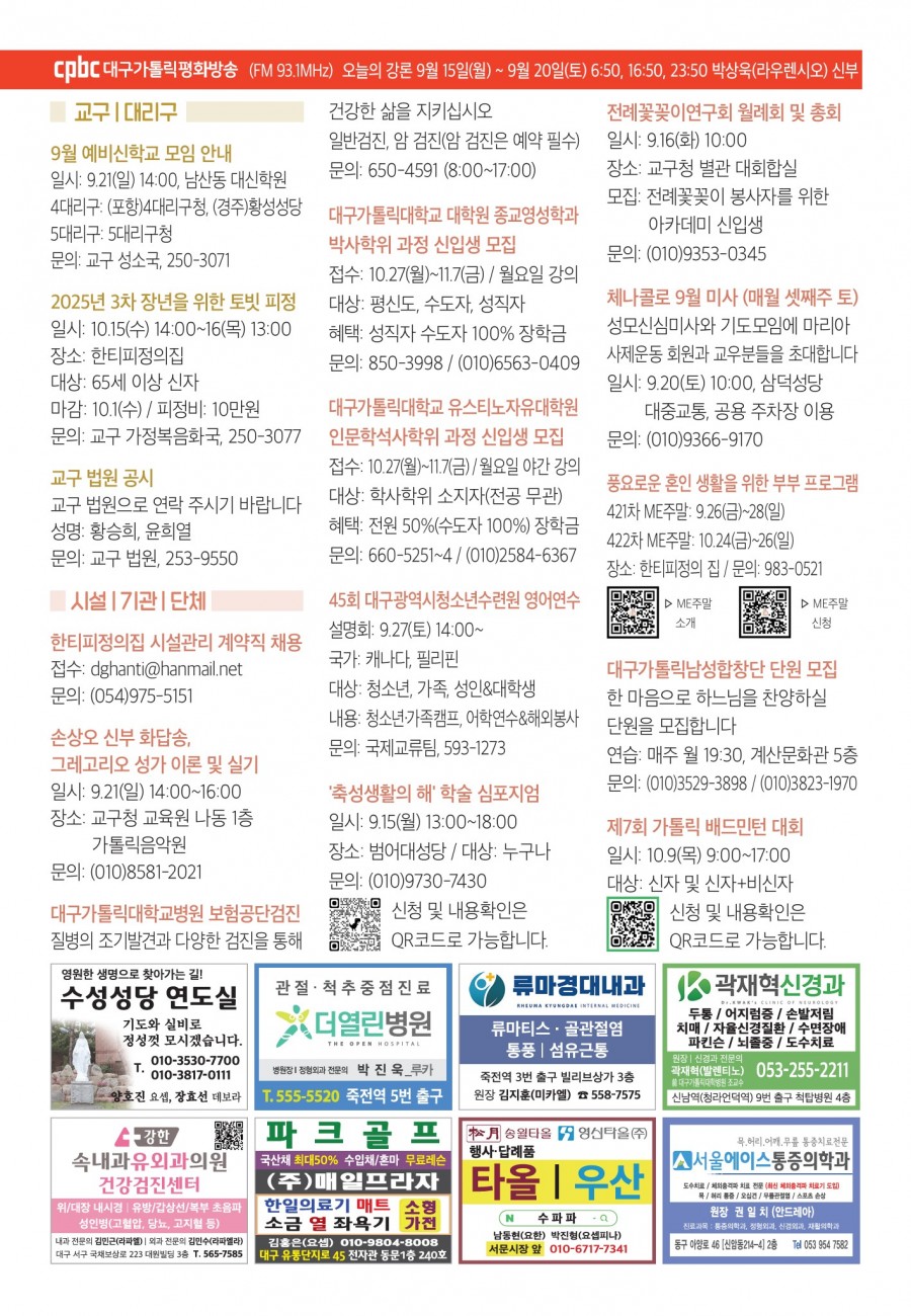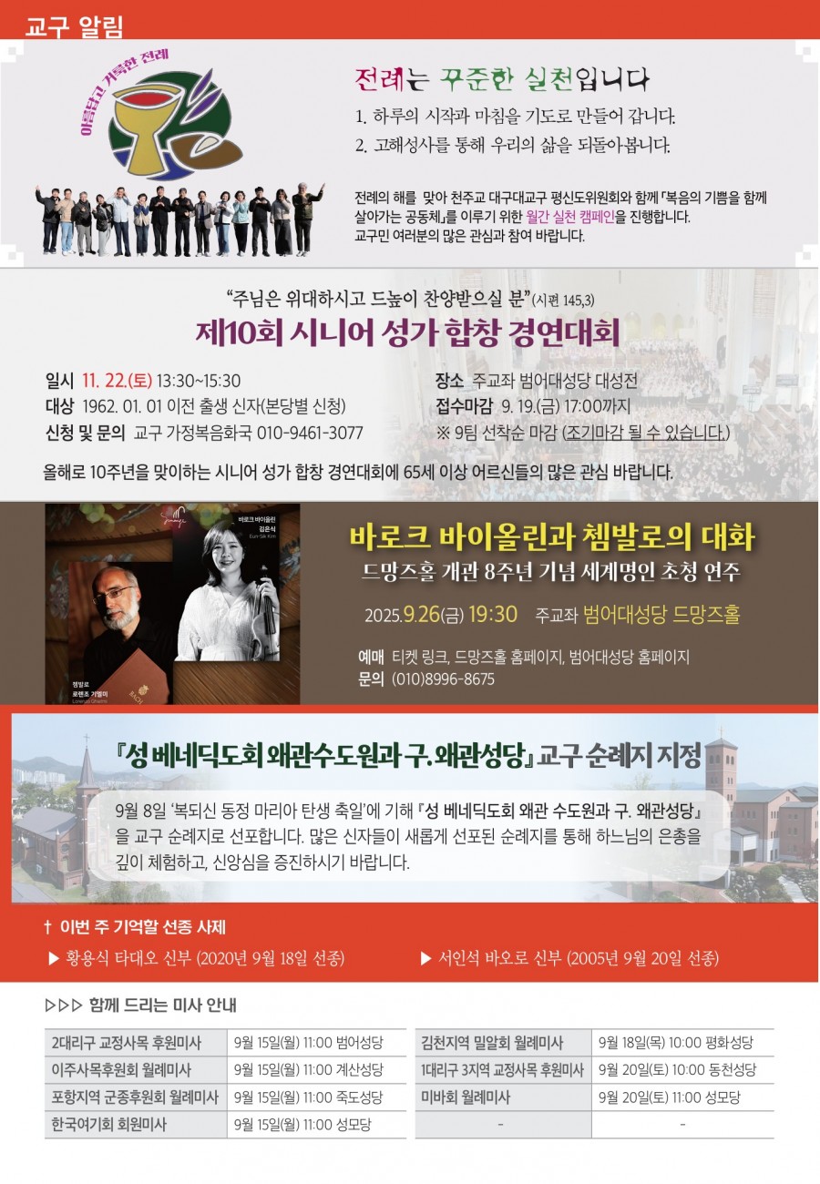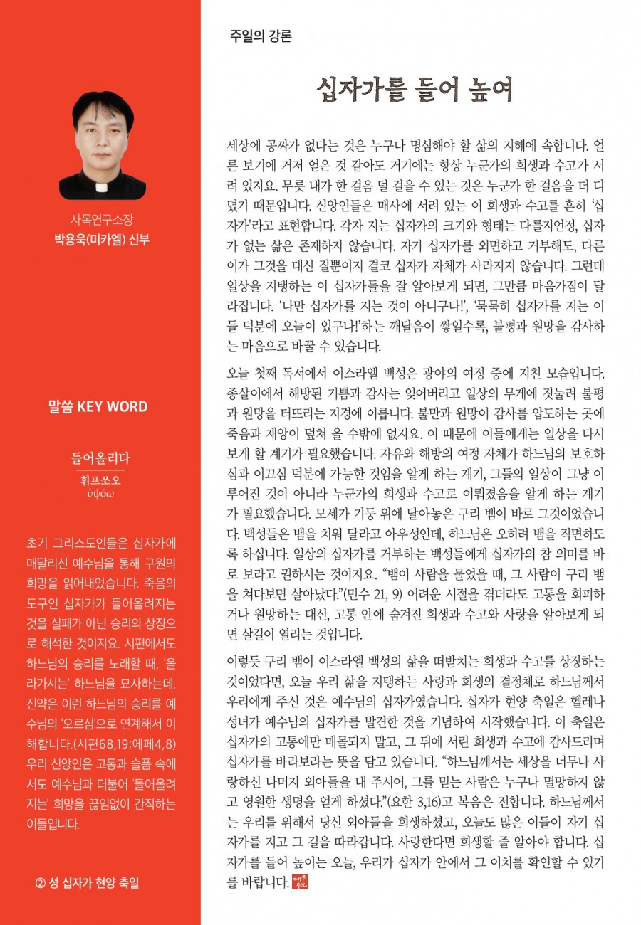 2025년 09월14일 (성 십자가 현양 축일) 대구주보 > 본당주보