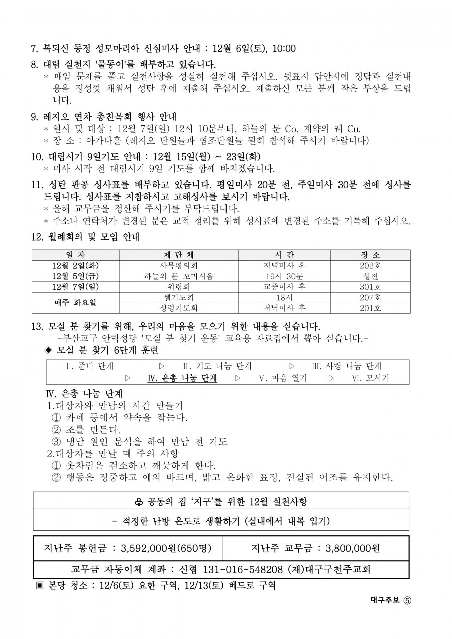 계좌정보 : 신협 131-016-548208 (재)대구구천주교회