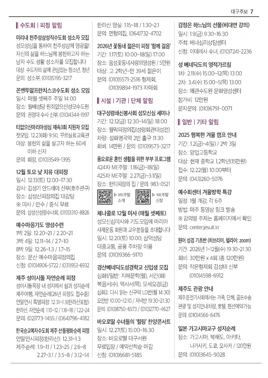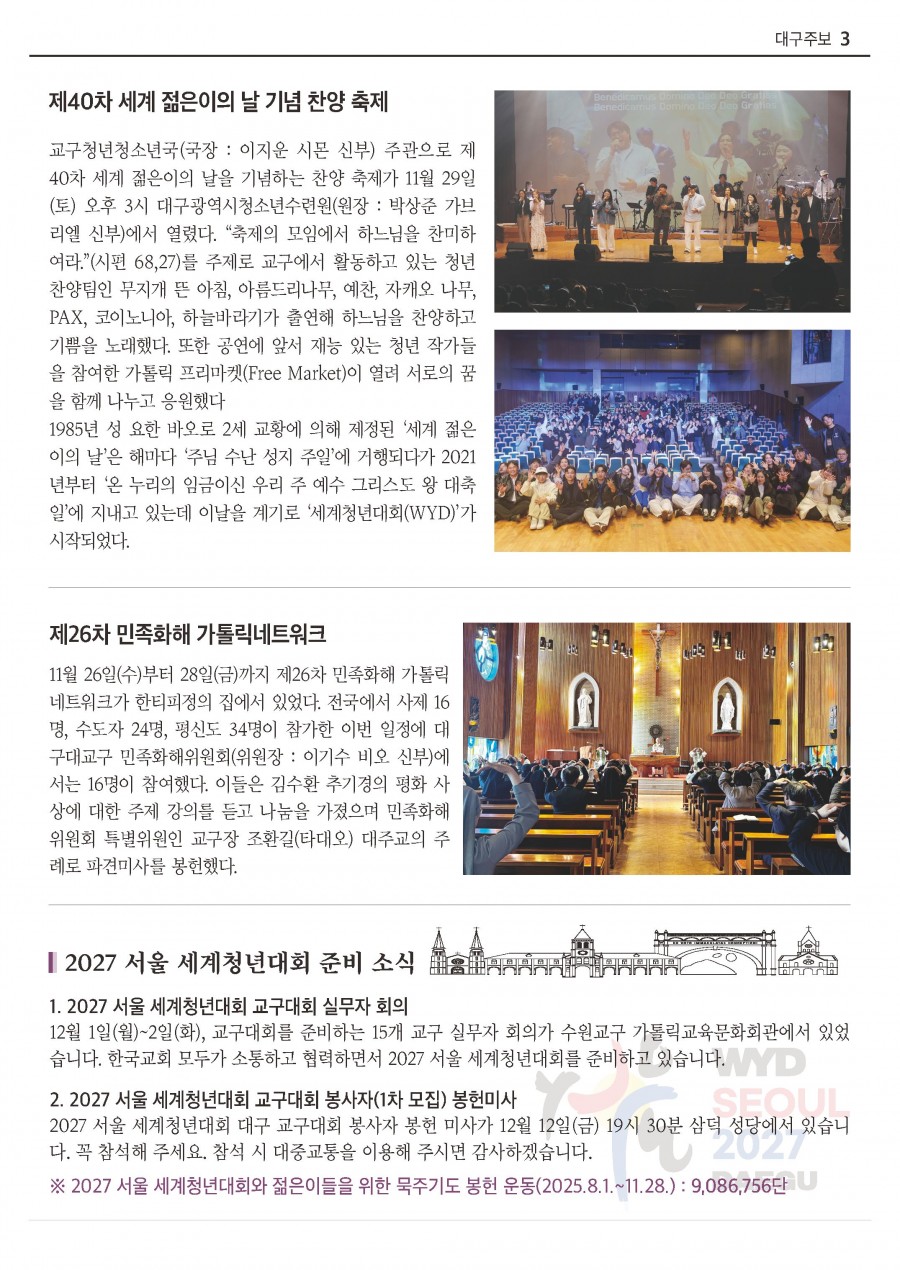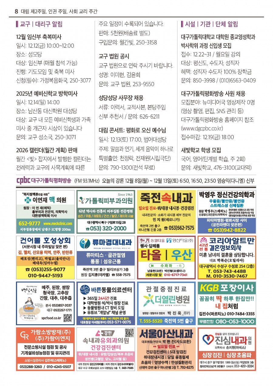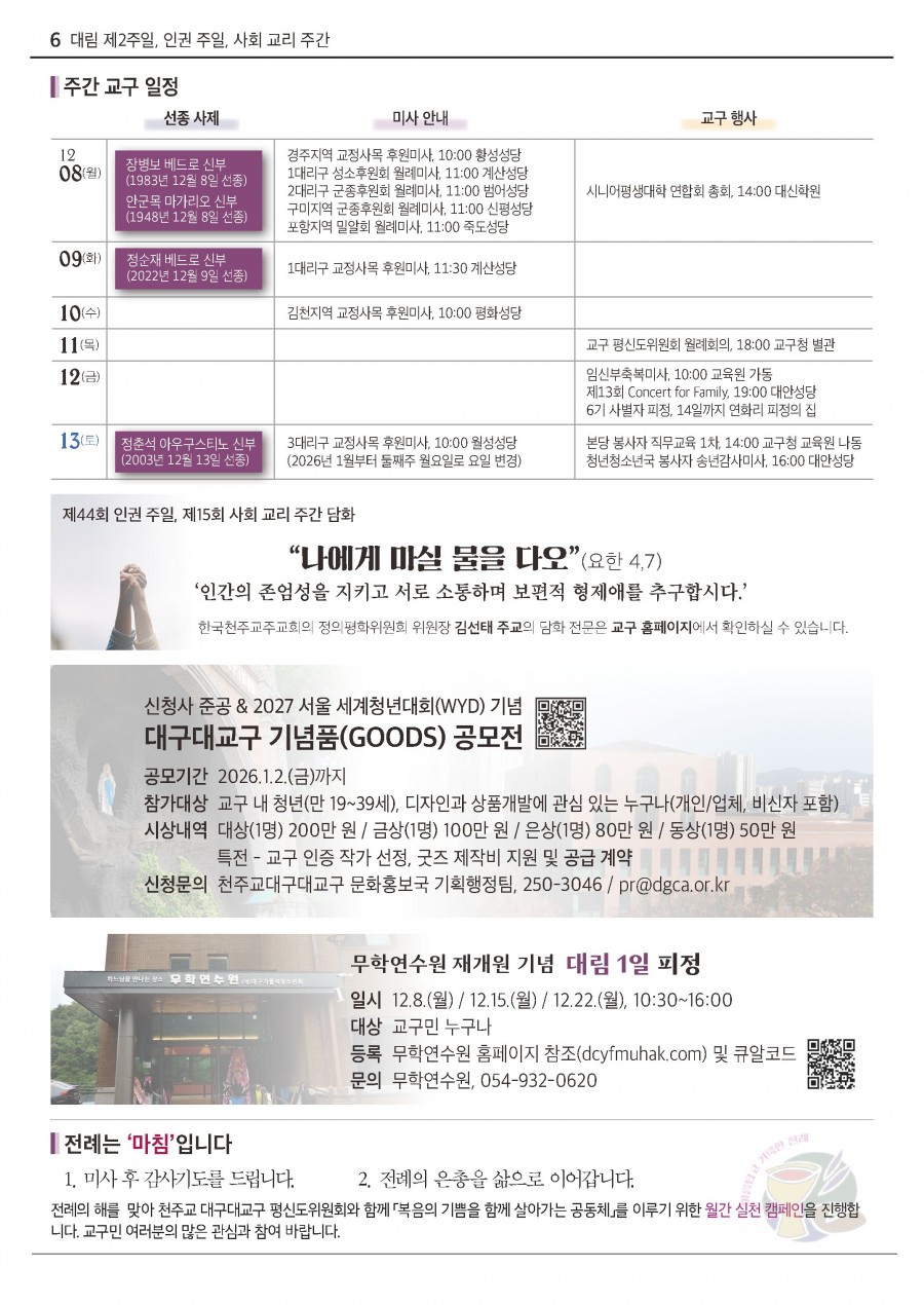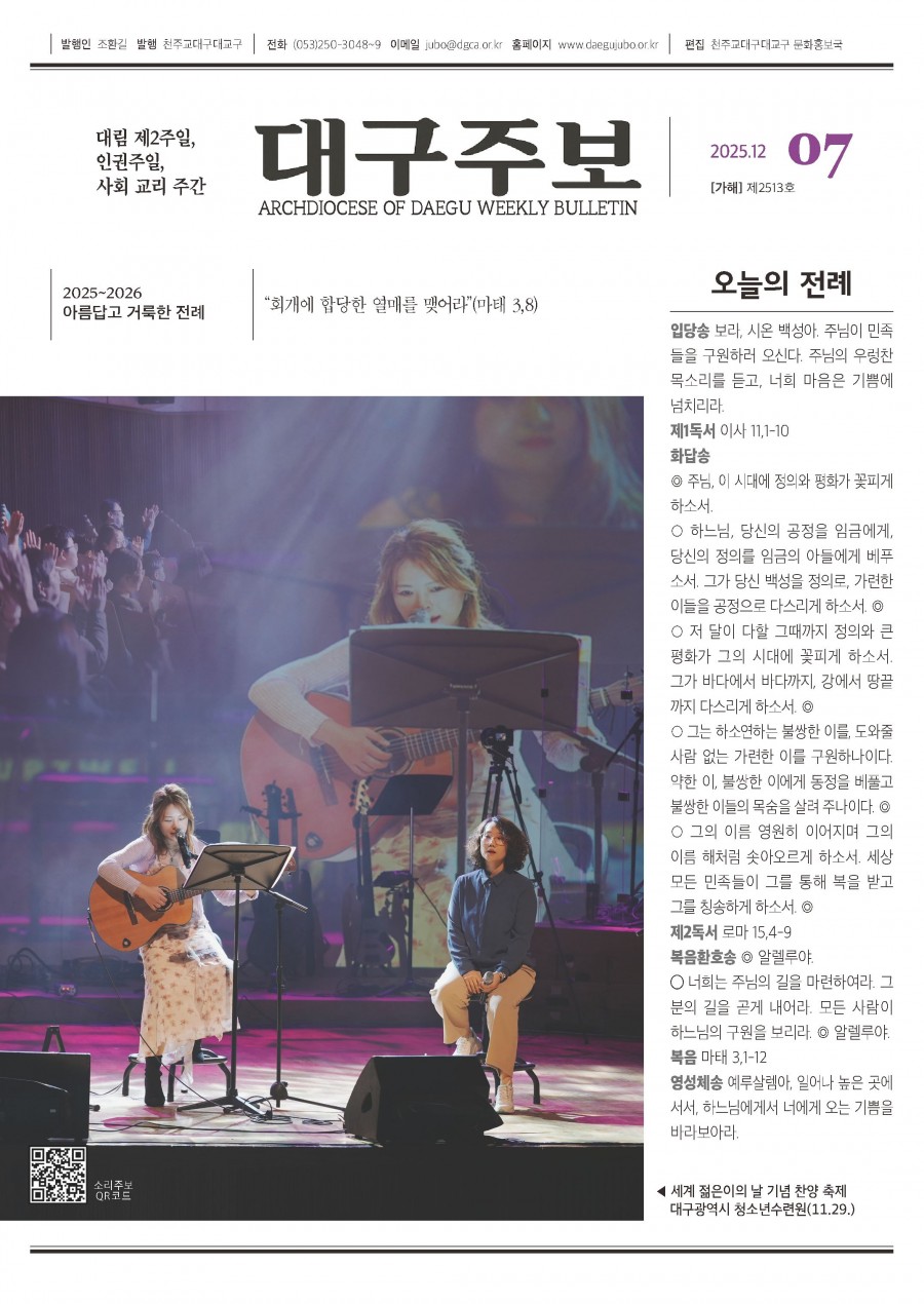 2025년 12월07일 (대림 제 2 주일, 인권주일, 사회 교리 주간) 대구주보 페이지 정보 본문 2025년 12월07일 (대림 제 2 주일, 인권주일, 사회 교리 주간) 대구주보 목록