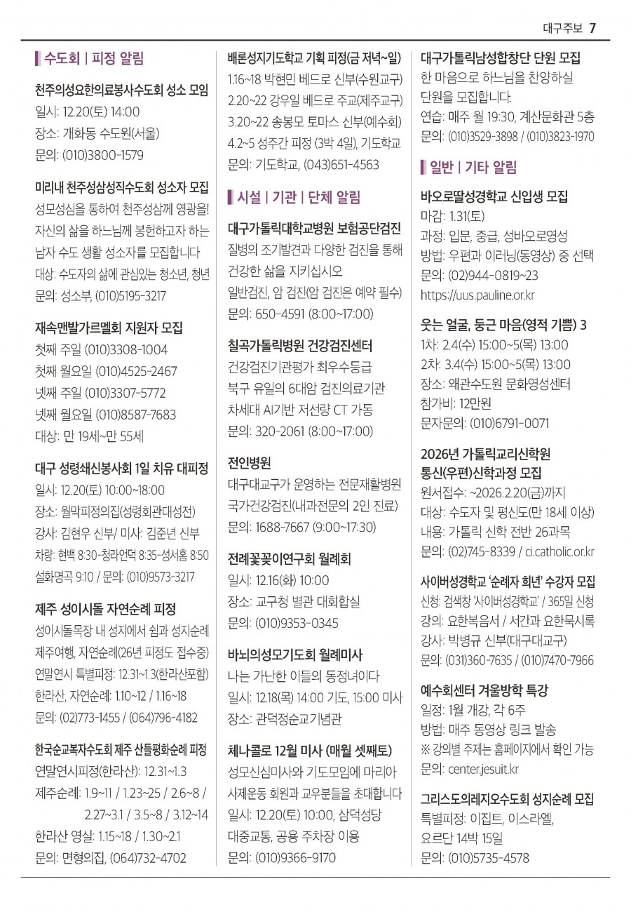 2025년 12월14일 (대림 제 3 주일, 자선주일) 대구주보 > 본당주보