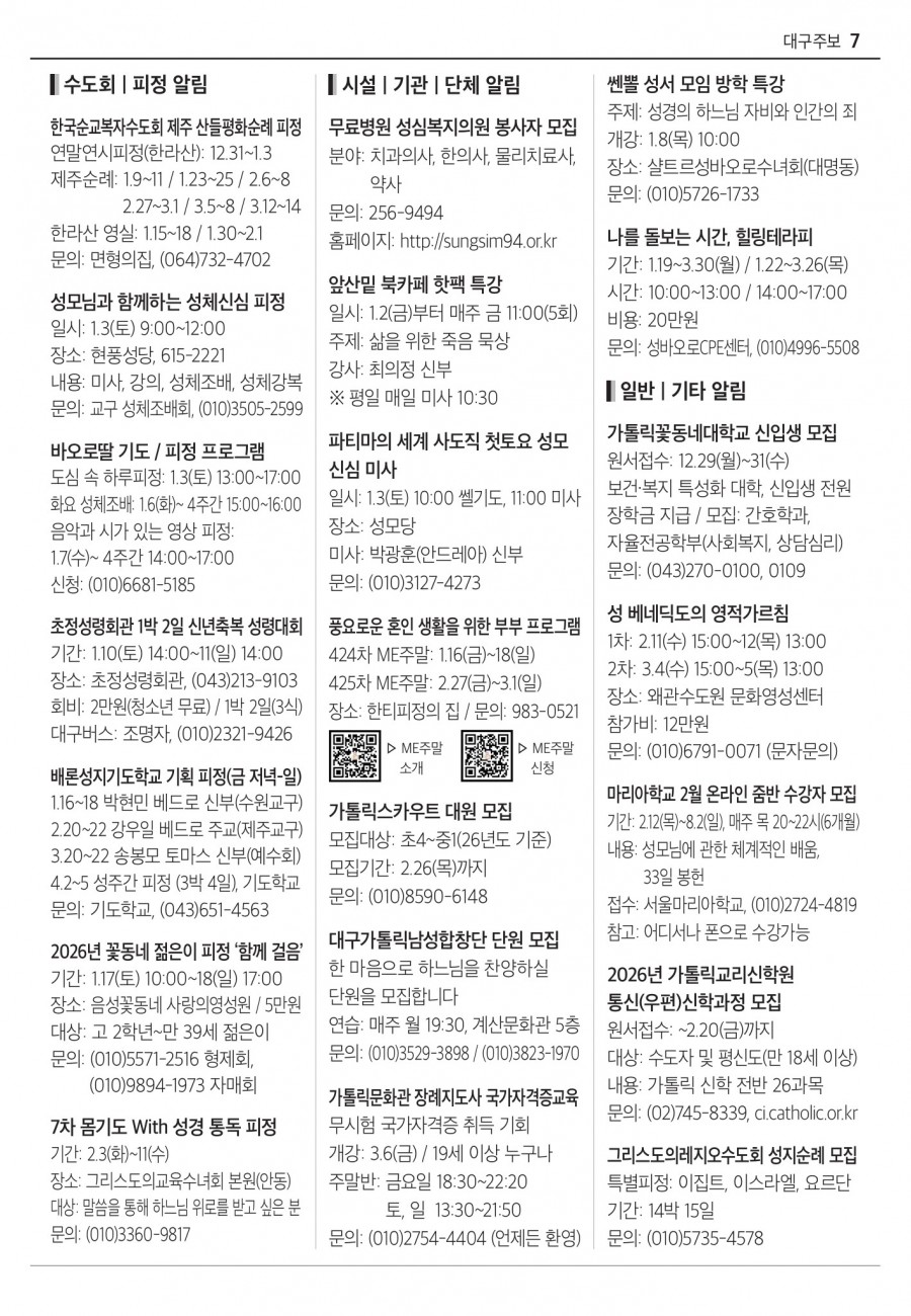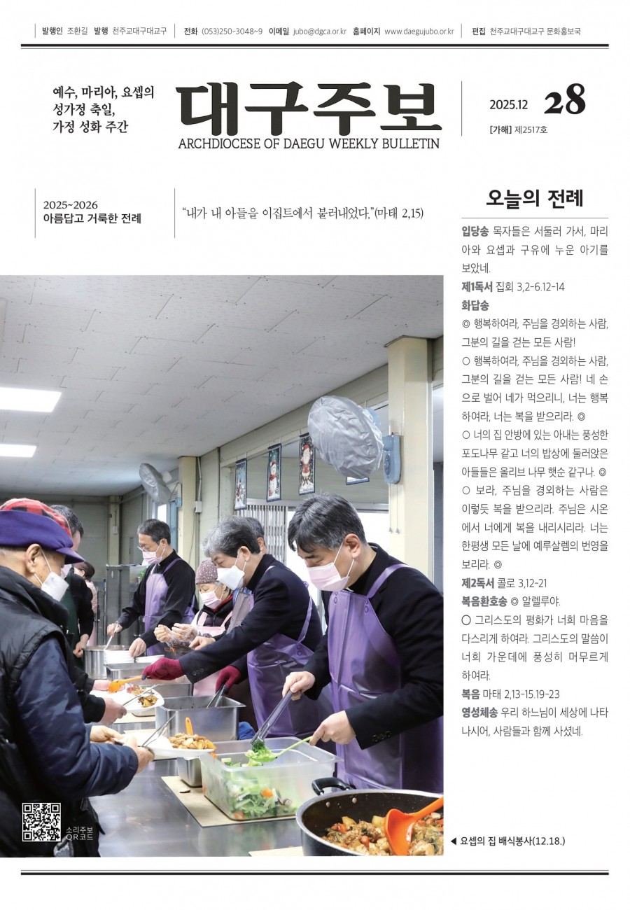 2025년 12월28일 (예수•마리아•요셉의 성가정 축일, 가정 성화 주간) 대구주보 페이지 정보 본문 2025년 12월28일 (예수•마리아•요셉의 성가정 축일, 가정 성화 주간) 대구주보 목록