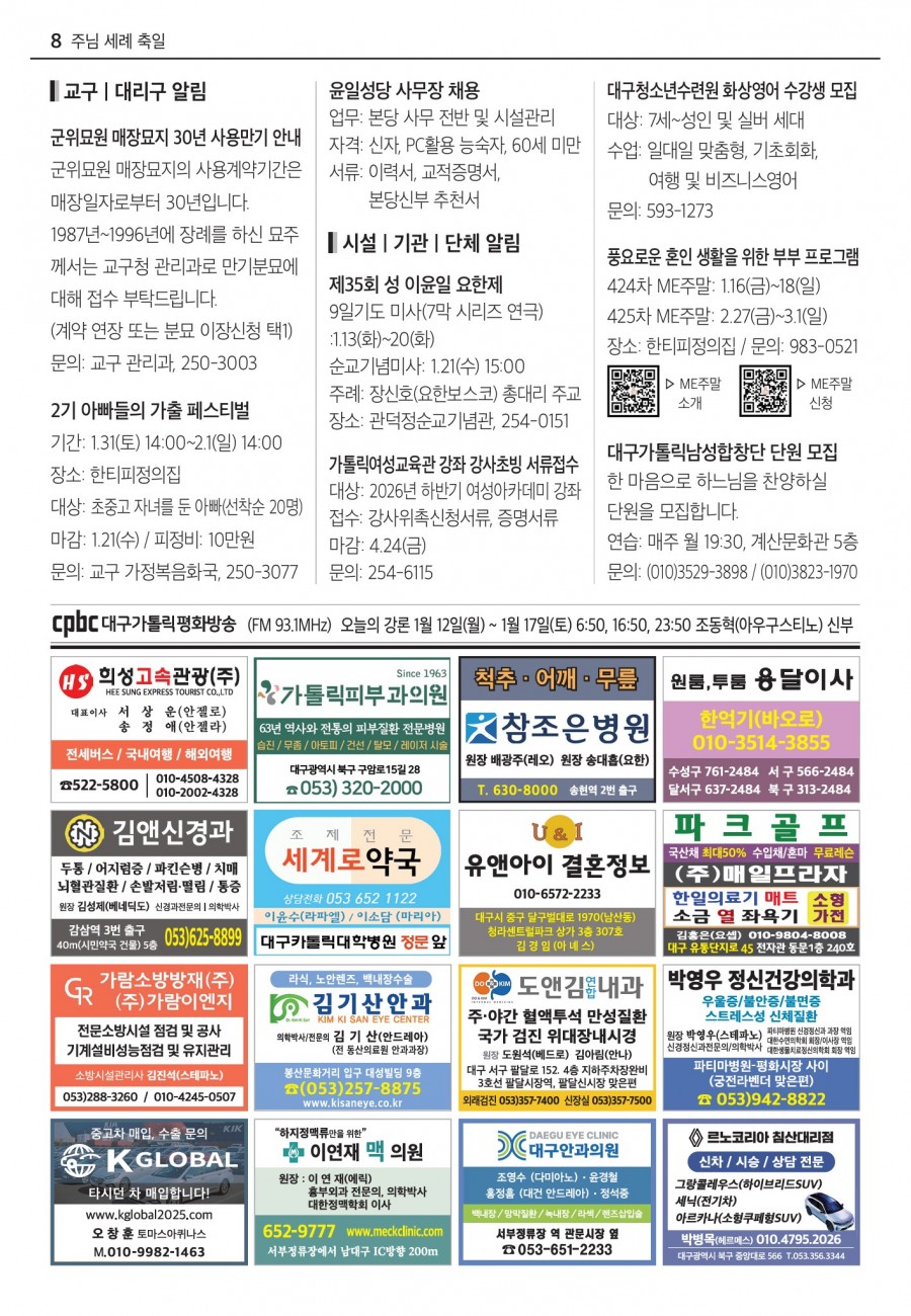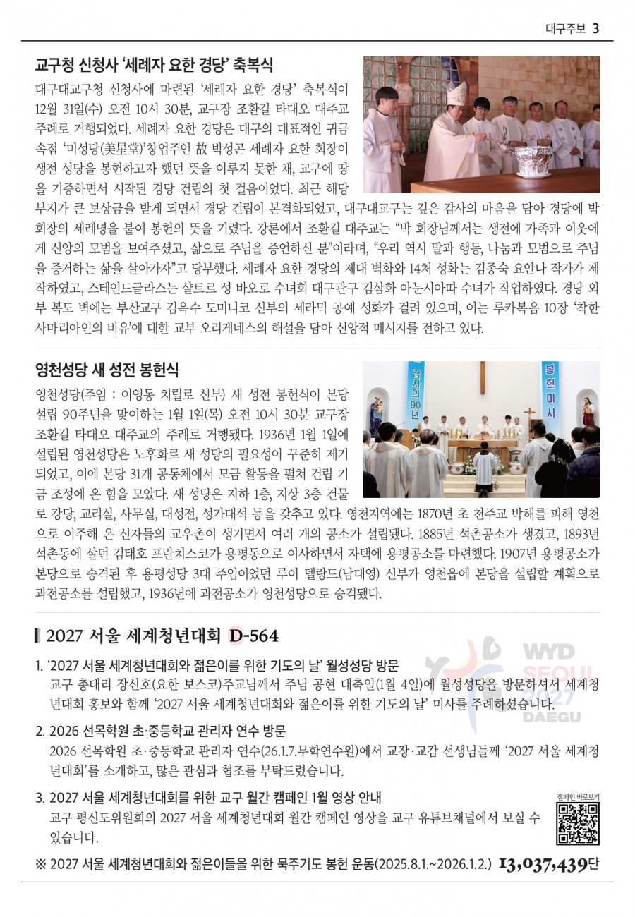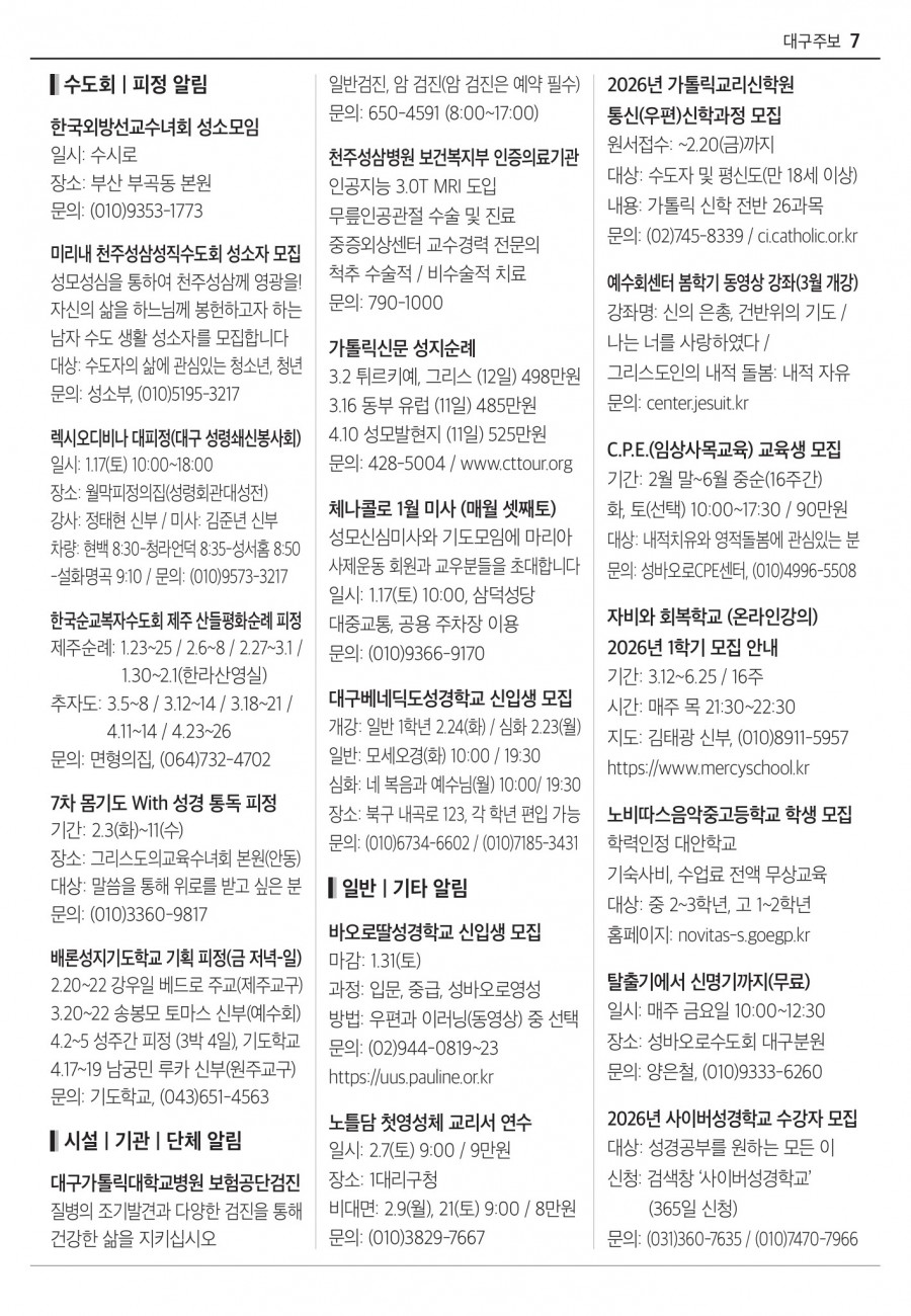 2026년 01월11일 (주님 세례 축일) 대구주보 > 본당주보