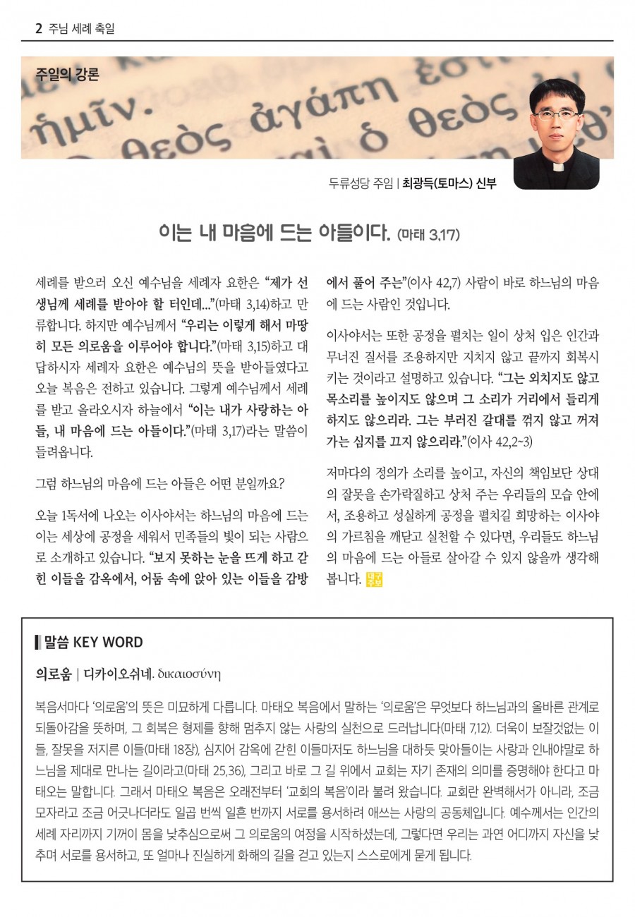 2026년 01월11일 (주님 세례 축일) 대구주보