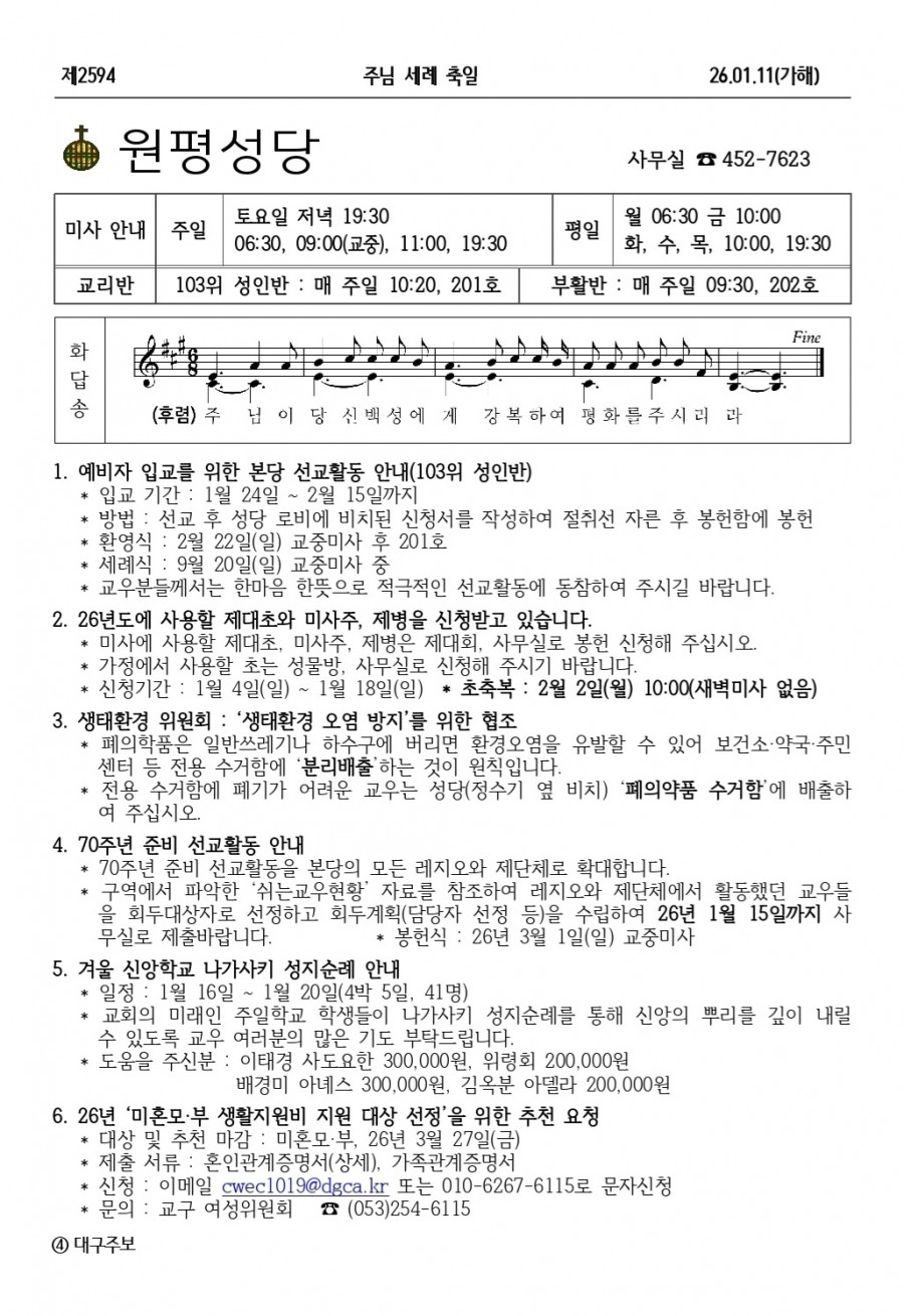 2026년 01월11일 (주님 세례 축일) 원평주보