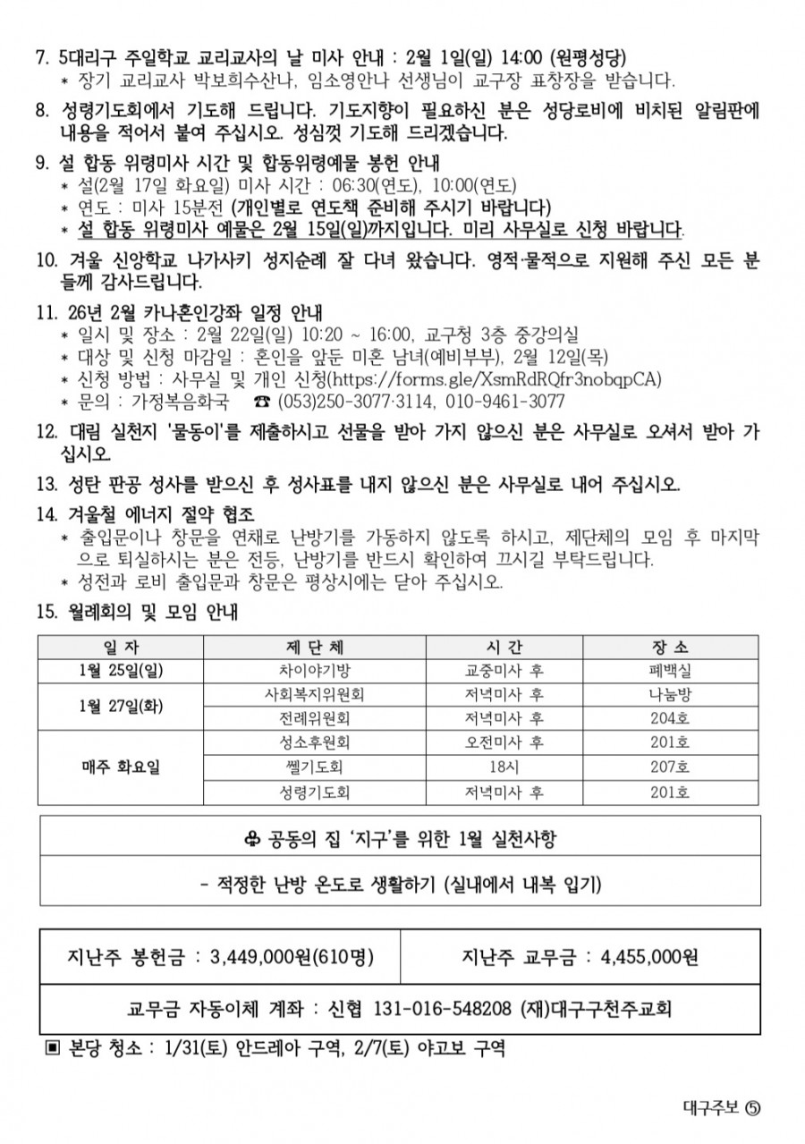 2026년 01월25일 (연중 제 3 주일, 하느님의 말씀 주일, 해외원조 주일) 원평주보 페이지 정보 본문 2026년 01월25일 (연중 제 3 주일, 하느님의 말씀 주일, 해외원조 주일) 원평주보 목록